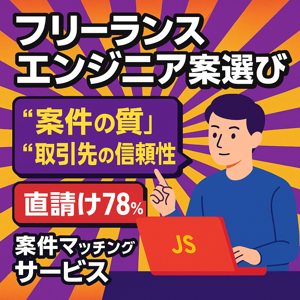 メタディスクリプション フリーランスエンジニアにとって最も重要なのは“案件の質”と“取引先の信頼性”。エンド・ … 続きを読む 【フリーランスエンジニア必見】“いい案件”を選べば、人生が変わる──エンド・元請け直請け78%の信頼マッチングサービスとは?